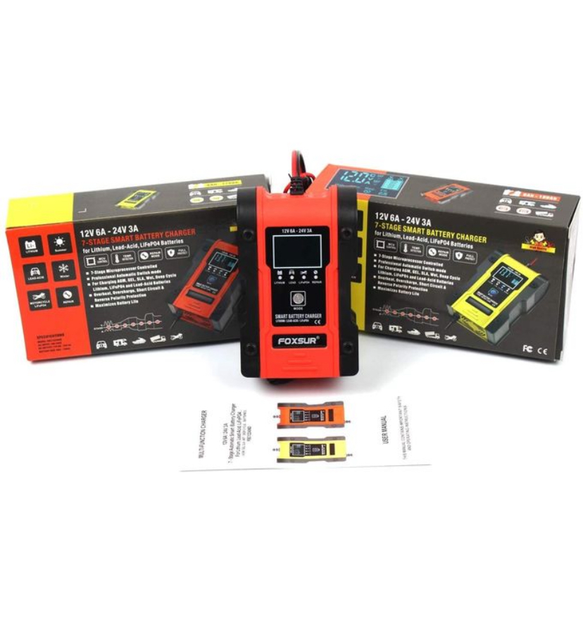 7-stage chargers are suitable for most battery types including Calcium, Gel AGM, Lithium, LiFePo4, Wet, lead Acid batteries.