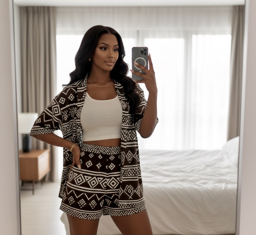 A stylish two-piece set with a lightweight shirt and matching shorts. Perfect for casual days, vacations, and weekend outings. Comfortable, trendy, and easy to wear.