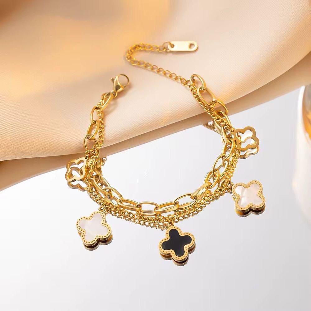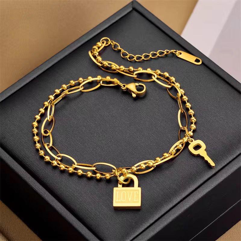 Royal elegance for your wrist. This trendy bracelet combines modern paperclip links with delicate Elizabeth II coin charms and golden beads. Crafted from high-quality stainless steel, it is designed to be tarnish-resistant.