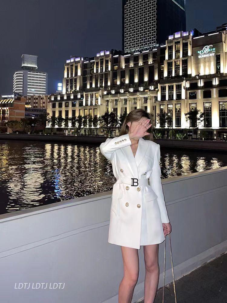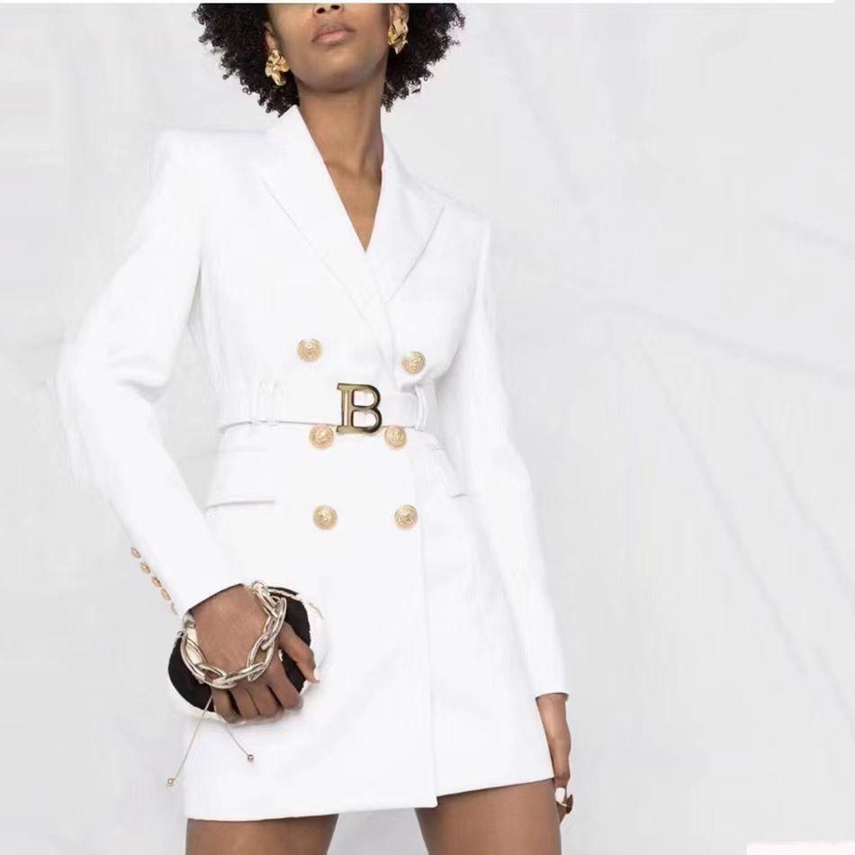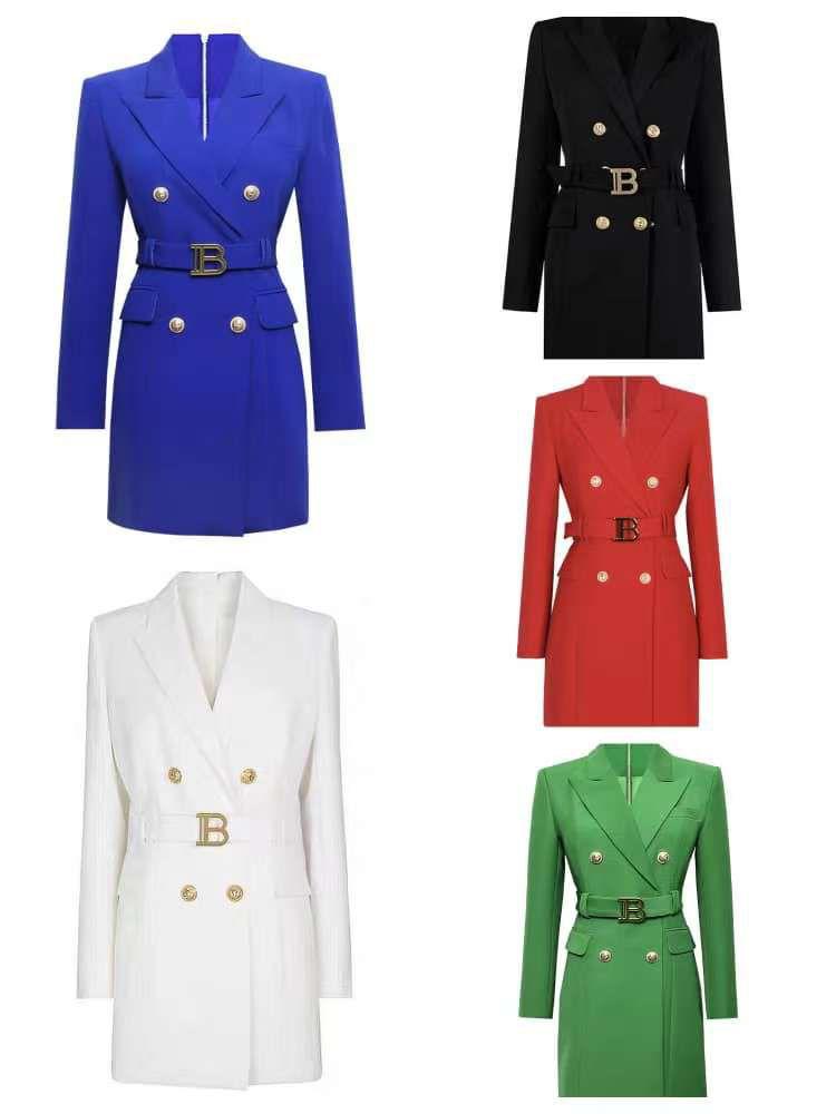 Double-Breasted Tailored Blazer Dress with Logo Belt — Chic & Sophisticated