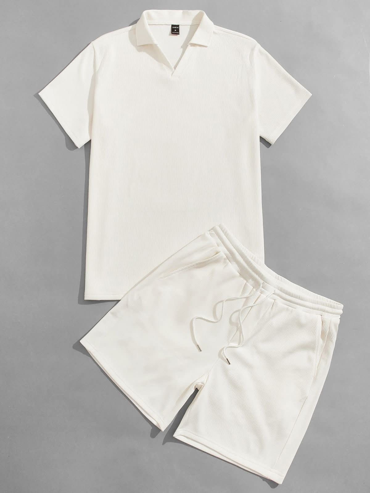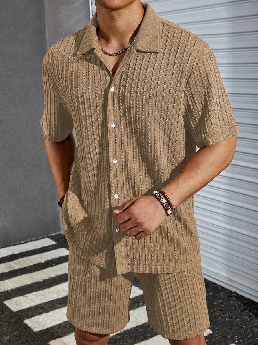 Embrace a minimalist and ultra-comfortable style with this coordinated men's set. Its unique waffle-like texture and relaxed fit make it the perfect choice for lounging or summer outings.