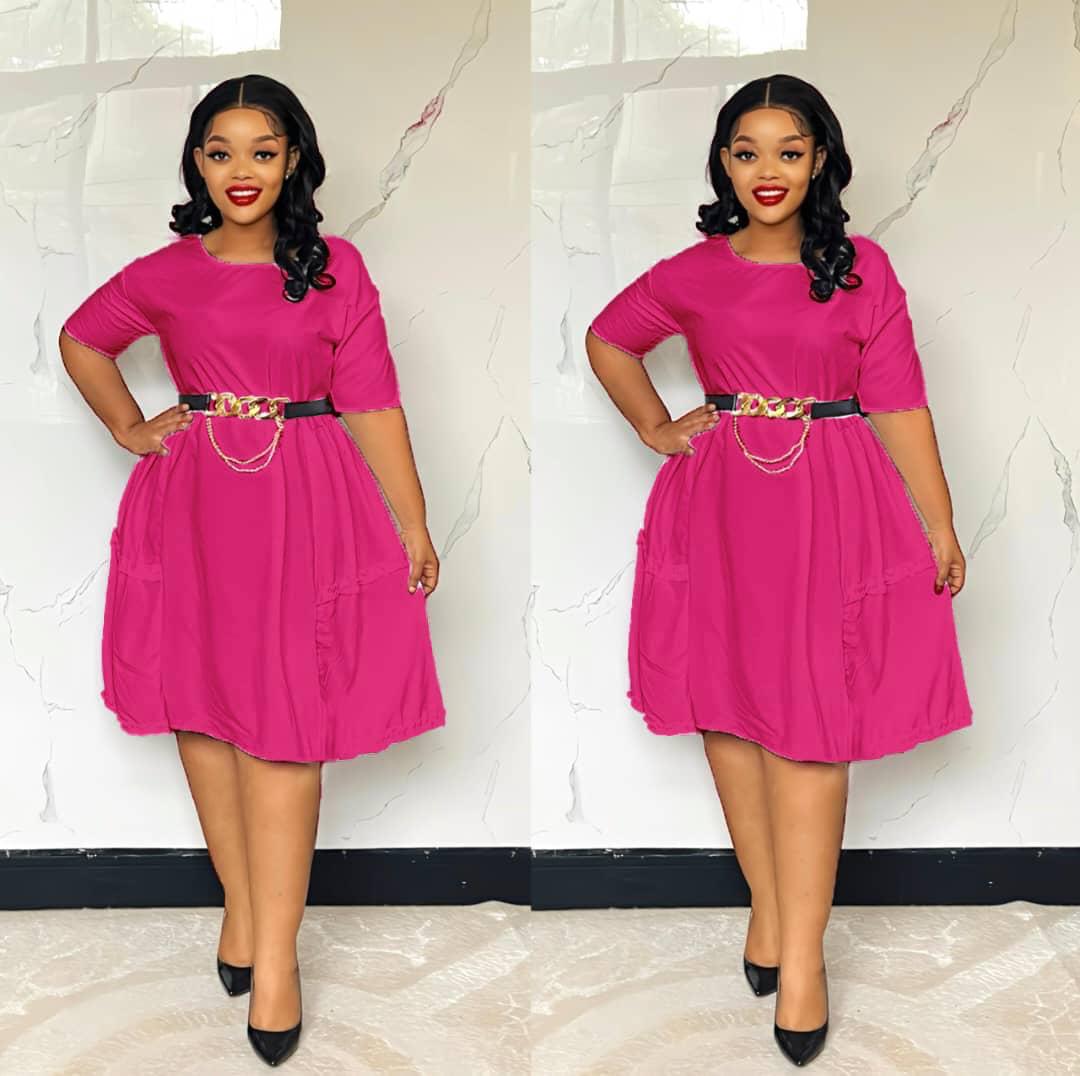Modern and comfortable flowy dress designed for a chic feminine look. The stylish belt adds elegance, perfect for outings, work, or special occasions.